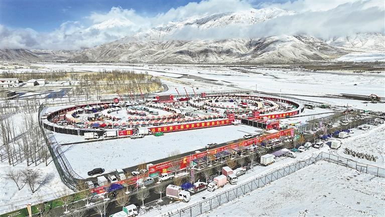 拉薩市達(dá)孜區(qū)第三屆年貨節(jié)現(xiàn)場(chǎng)(無人機(jī)拍攝)。 記者 鹿麗娟 攝