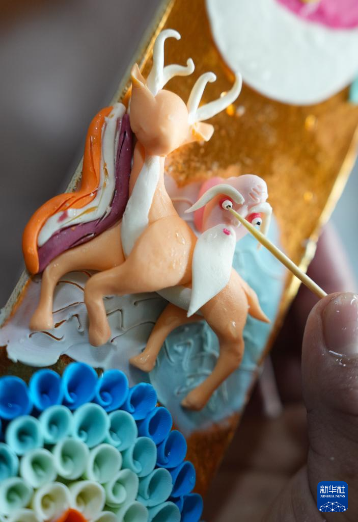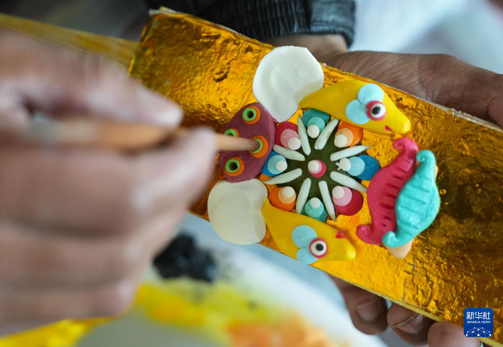 在拉薩市老城區(qū),手工藝人在展示酥油花(2月25日攝)。新華社記者 姜帆 攝??
