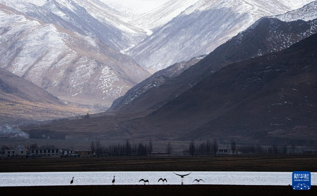 每年冬季,大批黑頸鶴在西藏拉薩市林周縣虎頭山水庫安家越冬?;㈩^山水庫周邊的沼澤地、湖泊及河灘為黑頸鶴提供了理想的越冬環(huán)境。