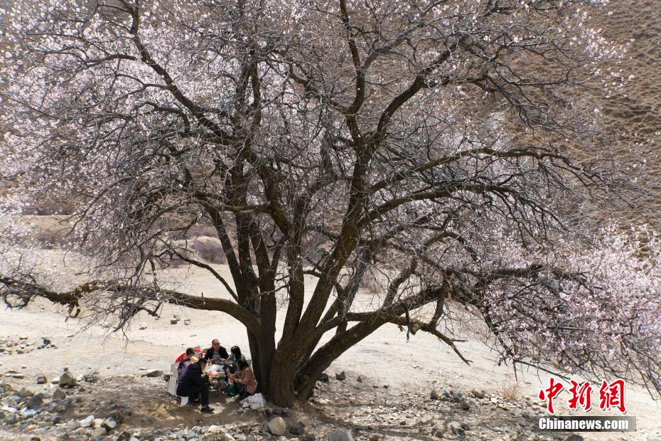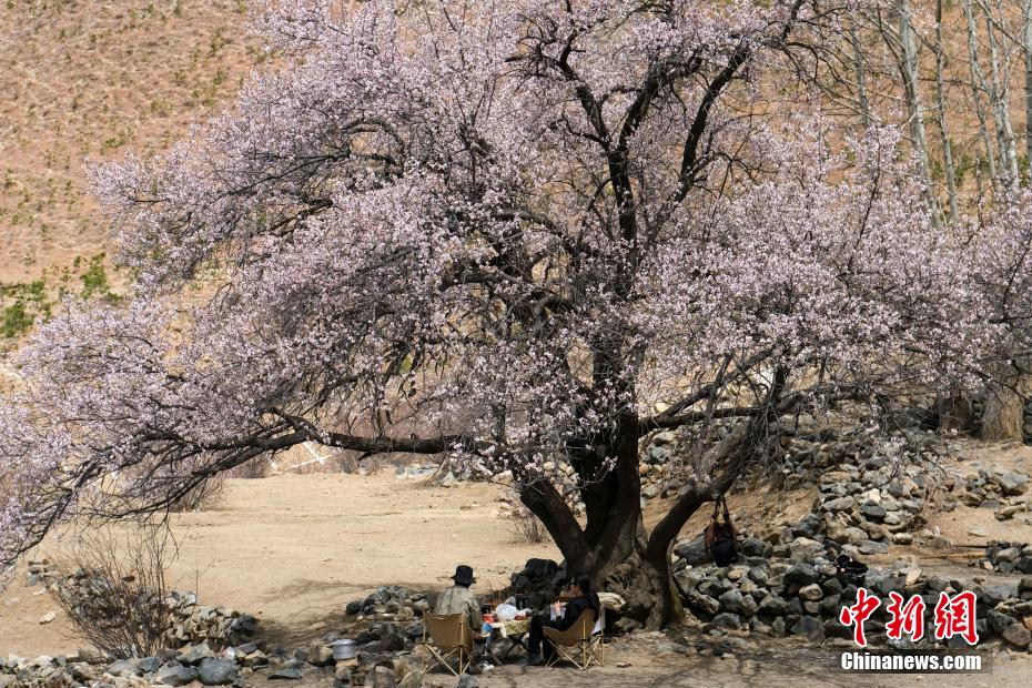 3月下旬,高原已是一片春意。西藏拉薩市區(qū)拉薩河南岸慈覺林的古桃樹進(jìn)入盛花期,3月30日恰逢周末,不少市民游客前往賞花“打卡”,在桃樹下野餐等,享受高原春日風(fēng)光。圖為3月30日,民眾在拉薩慈覺林桃花樹下野餐,享受悠閑時(shí)光。江飛波 攝