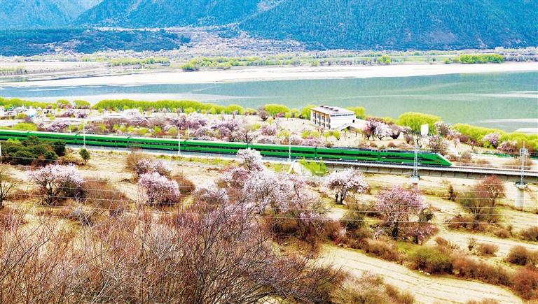 3月下旬至4月,西藏拉薩至林芝鐵路(拉林鐵路)沿線綿延的野生桃花林盛開,高原列車穿行在桃花海間,成為拉林鐵路春天最美的點綴。