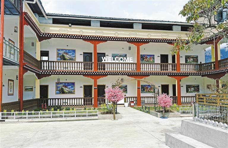 圖為喬次仁運(yùn)營(yíng)的民宿全貌。記者 旦增蘭澤 攝