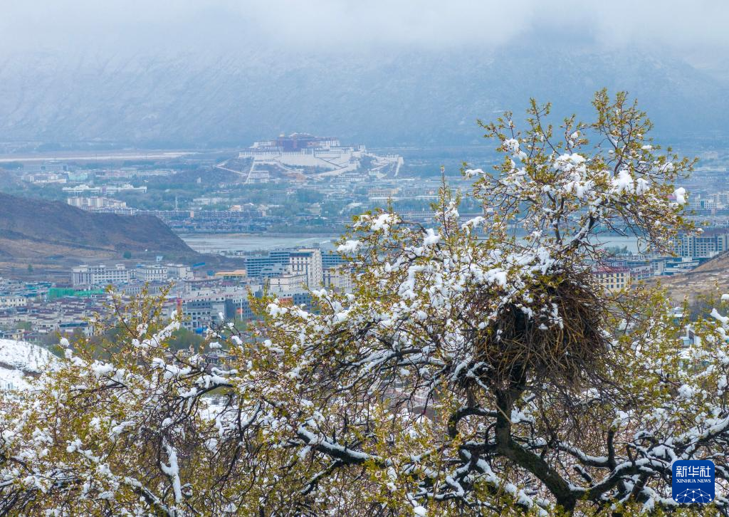 4月14日晚間,拉薩城區(qū)降下春雪,白雪與滿城的新綠相映成趣。